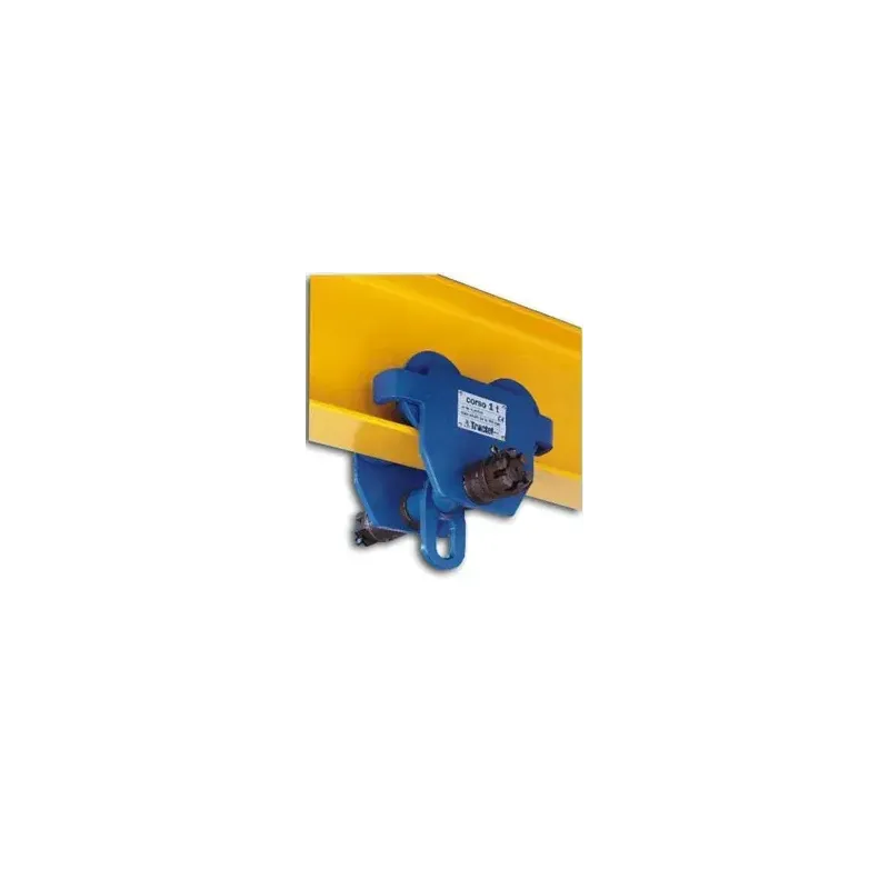 Carrello portaparanchi a spinta per lo scorrimento del paranco lungo travi a doppio T (IPE/HEA). Cuscinetti a sfere per scorrimento fluido, regolabile per diverse larghezze di trave.