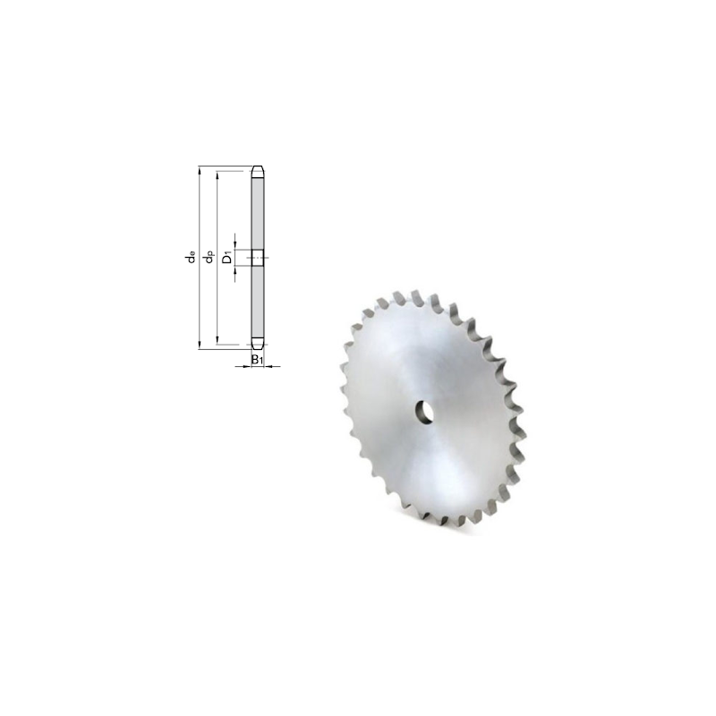 Pignone 1.1/4" semplice, progettato per trasmissioni medie che richiedono affidabilità e rotazione di una sola catena.
