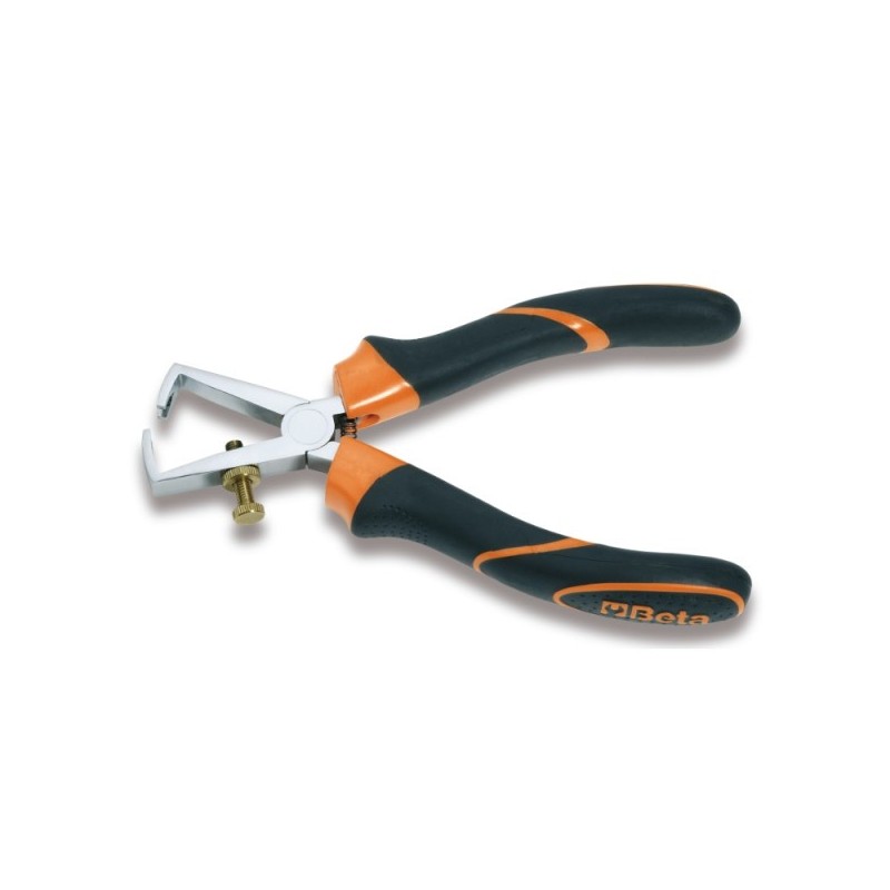 Pinza spelafili professionale Beta art. 1142BM per rimozione dell'isolamento da cavi elettrici senza danneggiare il conduttore. Lame calibrate con regolazione della profondità di taglio.