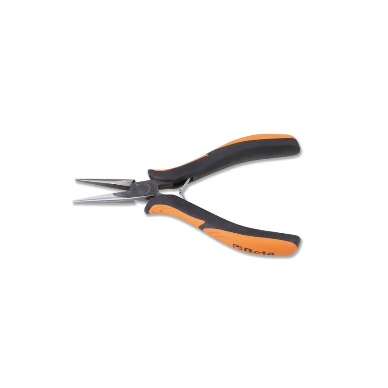 Pinza di precisione Beta per lavori di elettronica e micromeccanica. Becchi sottili e levigati per la manipolazione di componenti SMD, fili sottili e connettori delicati. Acciaio inossidabile temperato con molla di ritorno integrata. Impugnatura bimateriale antistatica.