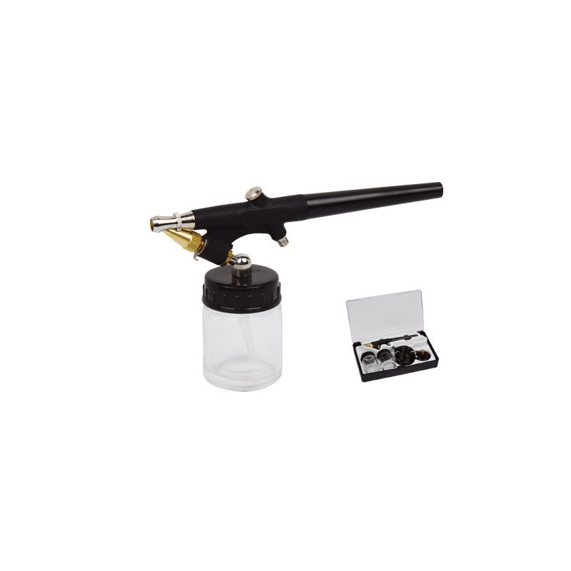 Il kit aeropenna 13502 include un aerografo con serbatoio, ugello standard, accessori per regolazione del flusso e controllo dell’aria, corpo in metallo resistente e leva ergonomica, progettato per applicazioni di dettaglio e ritocchi su superfici piccole e medie, compatibile con vernici acriliche, smalti e inchiostri, adatto a uso professionale e hobbistico avanzato, con componenti intercambiabili per manutenzione e regolazione ottimale del getto.