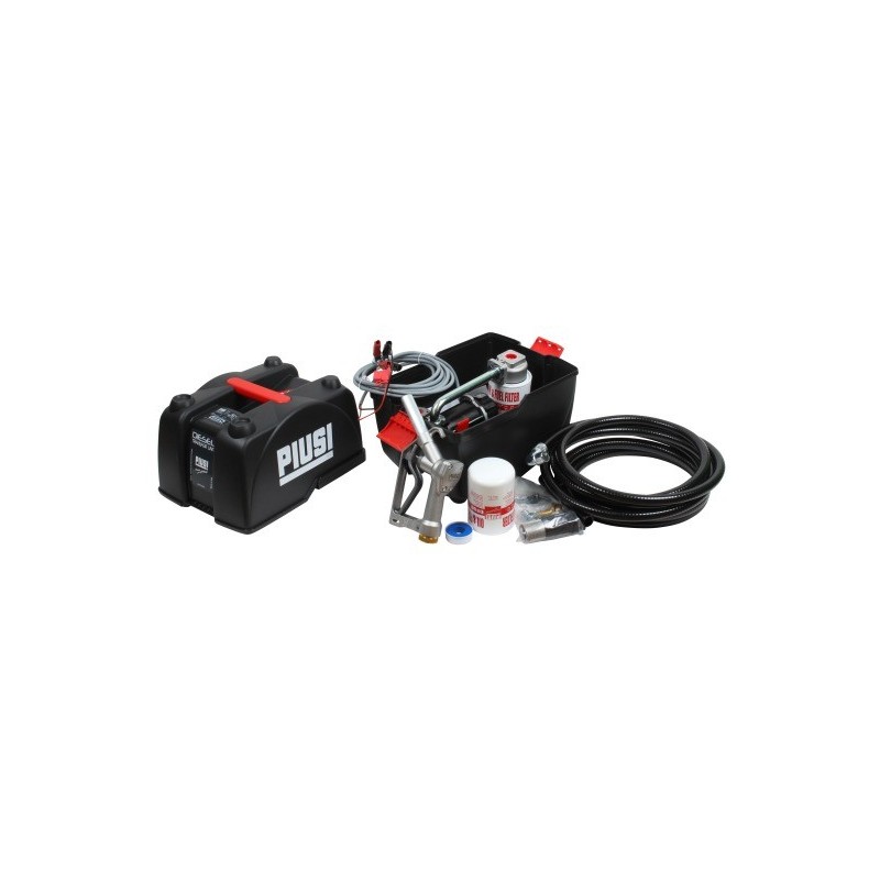 Kit distributore portatile per gasolio marca Piusi modello Box 12V Pro. Completo di pompa, pistola e tubo per erogazione mobile.