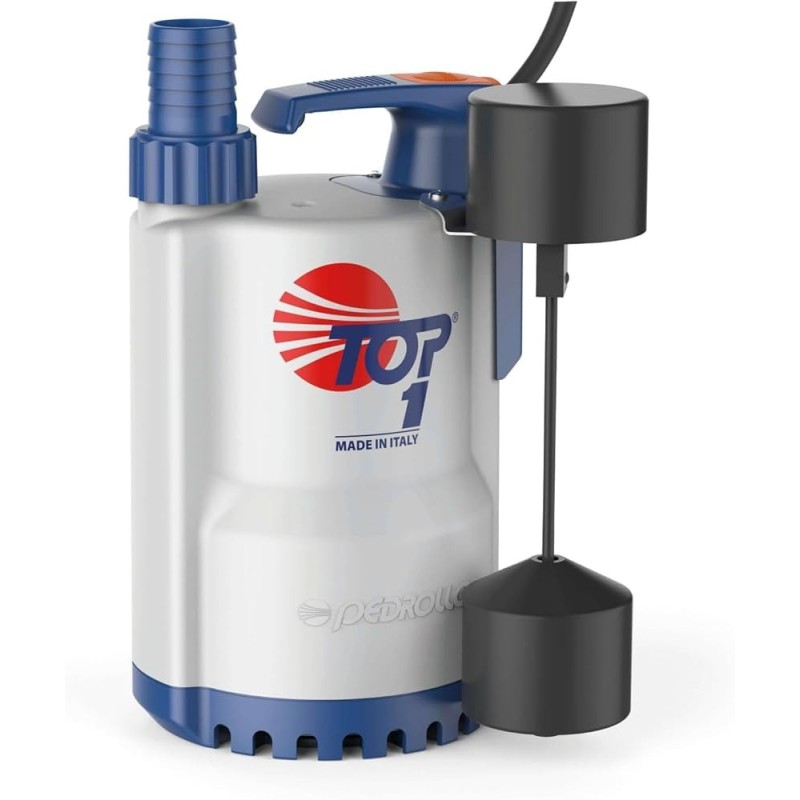 Elettropompa sommergibile Pedrollo modello Top 1 monofase 220V da 0,33 HP. Corpo in tecnopolimero leggero per drenaggio acque chiare.