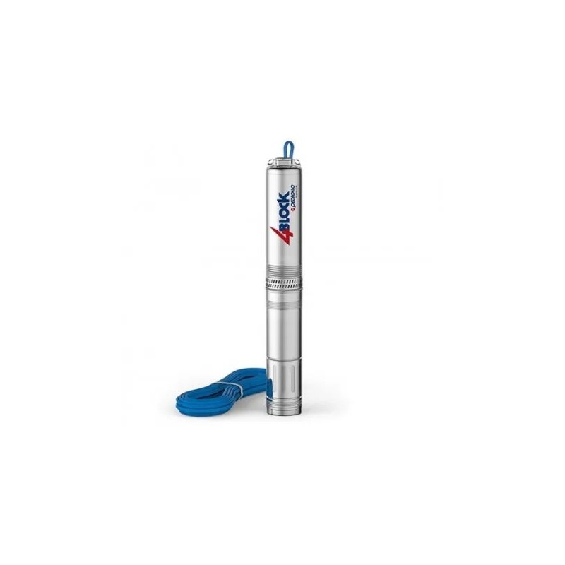 Elettropompa sommersa monofase Pedrollo modello 4BLOCKm 4/9 da 1 HP per pozzi da 4 pollici. Costruzione in acciaio inox con giranti flottanti resistenti alla sabbia.