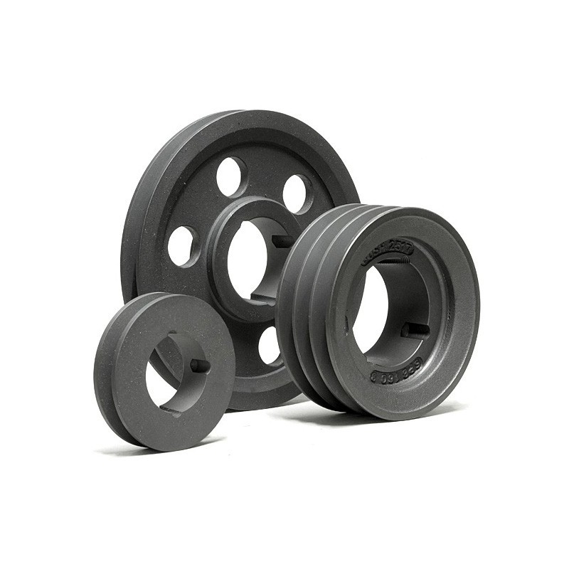 La puleggia per bussola sezione "B", 3 gole è una puleggia in ghisa progettata per trasmissioni a cinghia trapezoidale tripla. Grazie alla possibilità di alloggiare una bussola specifica (venduta separatamente), può essere accoppiata direttamente all’albero del motore senza necessità di tornire o forare la puleggia.