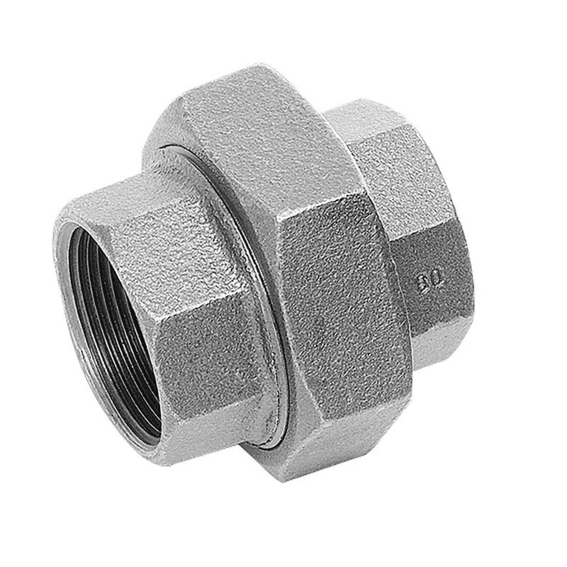 Bocchettone (giunto smontabile) in acciaio zincato con dado centrale di serraggio e guarnizione piatta. Filettatura gas BSP. Consente il collegamento smontabile tra due tratti di tubazione. 10 misure da 1/2" a 2".