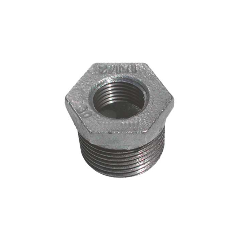 Riduzione zincata maschio-femmina filettata gas BSP, 30 misure da 1/2" a 2". Acciaio zincato. Per riduzione di diametro in impianti idrosanitari e gas.