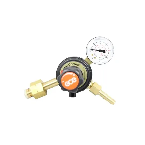 Riduttore di pressione per gas propano Mujelli modello Basecontrol SE, dotato di 1 manometro per il controllo della pressione di uscita fino a 4 bar. Garantisce una regolazione precisa e un flusso stabile per operazioni di saldatura, brasatura e taglio con gas propano.