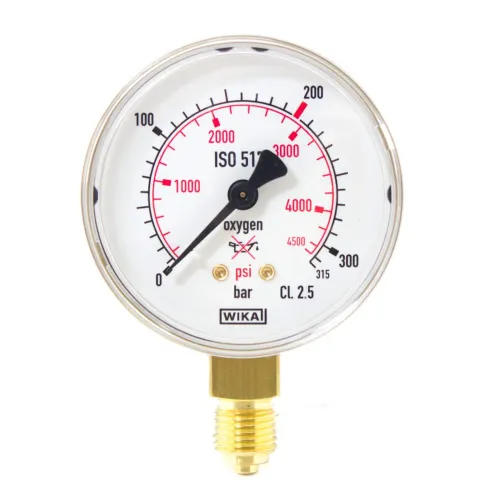 Manometro per ossigeno con scala 0-315 bar per riduttori di pressione.