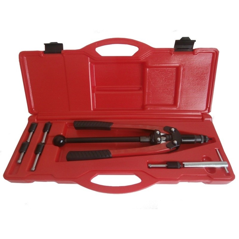 Kit professionale completo marca FAR con insertatrice/pinza manuale modello KJ29 e assortimento inserti filettati con tiranti da M3 a M10 in cassetta portattrezzi. La gamma più completa per coprire tutte le esigenze.