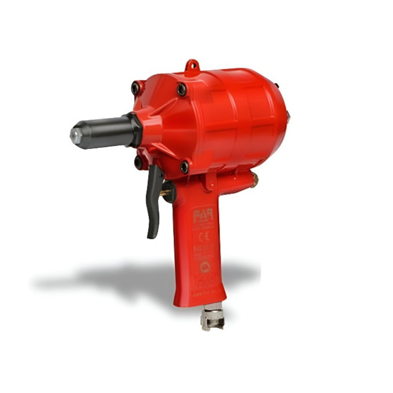 Rivettatrice pneumatica modello RAC 83 marca FAR per rivetti alluminio da 2,4 a 5 mm. Alimentata ad aria compressa per uso industriale intensivo su linee di produzione e assemblaggio con alta cadenza.