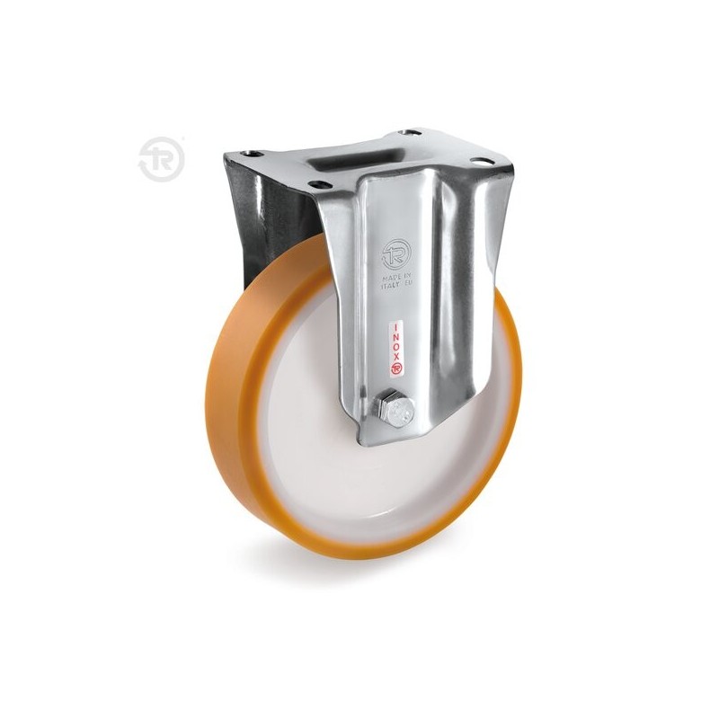 Ruota in poliuretano con supporto inox fisso. 6 misure.