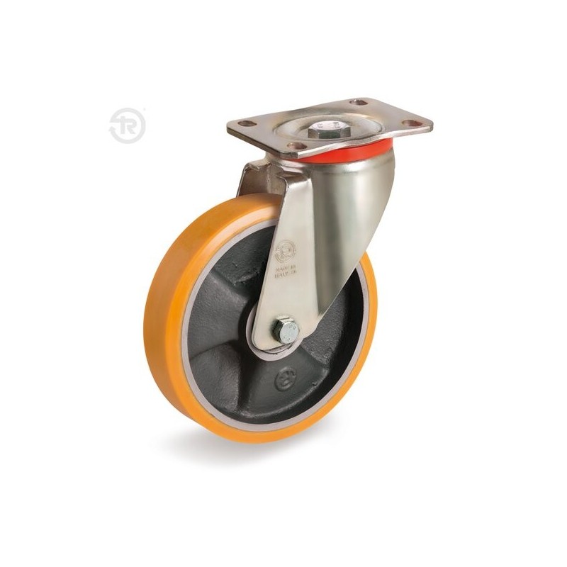 Ruota in poliuretano con supporto pesante girevole ad alta portata. 3 misure.
