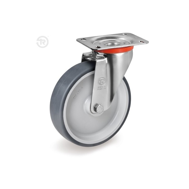 Ruota in gomma termoplastica (TPR) con supporto girevole marca Tellure Rota. 5 misure da D.80 a D.200mm.