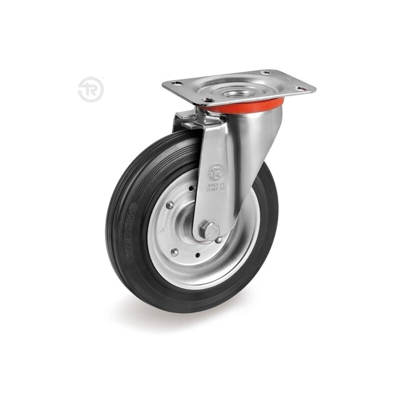 Ruota in gomma con piastra girevole marca Tellure Rota. 8 misure da D.80 a D.280mm.