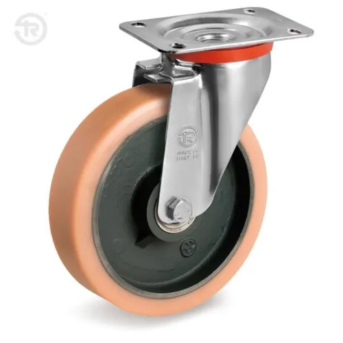 Ruota gomma termoplastica supporto girevole Tellure Rota, 5 misure da D.80 a D.200mm. Silenziosa, non sporca i pavimenti.