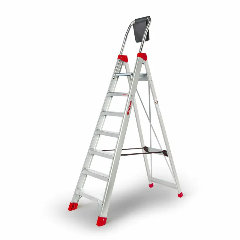 Scala a cavalletto (doppia salita) in alluminio, autoportante e stabile per lavori in altezza senza appoggio a parete. IMA S.r.l. (Faraone IMA), azienda italiana con sede a Tortoreto (TE), è leader nel settore delle scale, trabattelli e piattaforme in alluminio. Opera sul territorio europeo con produzione certificata da autorevoli enti nazionali ed esteri, offrendo soluzioni sicure e innovative per il lavoro in quota. Gradini ampi e antiscivolo, cerniere di sicurezza e piedini antiscivolo.