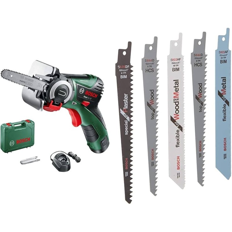 Caratteristiche tecniche: ‑ Alimentazione 12 V Li‑ion ‑ Batteria inclusa 2,0–2,5 Ah ‑ Tecnologia di taglio NanoBlade senza affilatura né oliatura ‑ Sistema di montaggio lama SDS ‑ Profondità di taglio massimo legno 65 mm ‑ Profondità di taglio massimo plastica 30 mm ‑ Velocità a vuoto 0–4100 giri/min ‑ Peso circa 0,9 kg con batteria ‑ Applicazioni taglio: legno, rami, plastica ‑ Parte del sistema Power for ALL 12 V Bosch