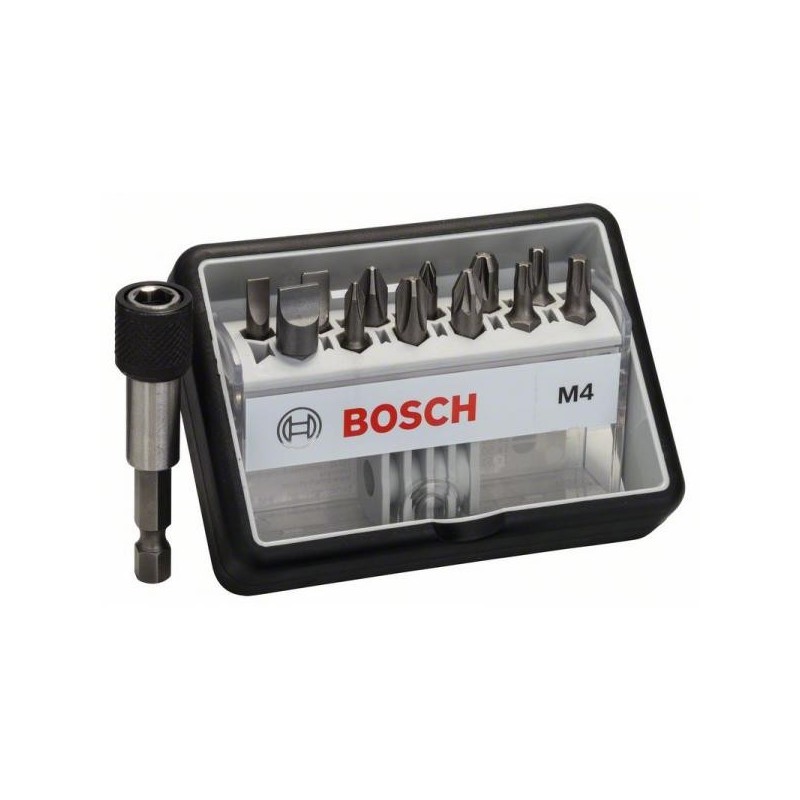 Assortimento di utensili BOSCH, kit completo per lavori di meccanica, manutenzione e assemblaggio. Utensili selezionati per coprire le esigenze più comuni dell'officina. Bosch è un gruppo industriale tedesco fondato nel 1886, leader mondiale nella produzione di elettroutensili, accessori e sistemi di misura. La divisione Power Tools offre una gamma completa di inserti, punte, lame e accessori per avvitatura e foratura di qualità professionale.