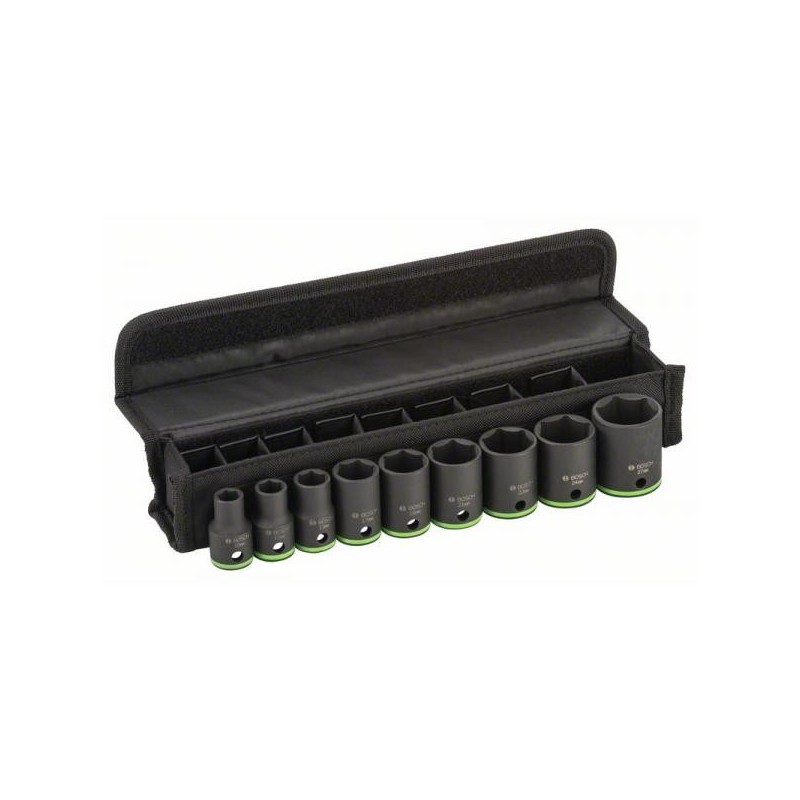 Set di bussole esagonali Bosch con attacco esagonale standard e magnete permanente per serraggio e allentamento di dadi e bulloni con elettroutensili o utensili manuali.
