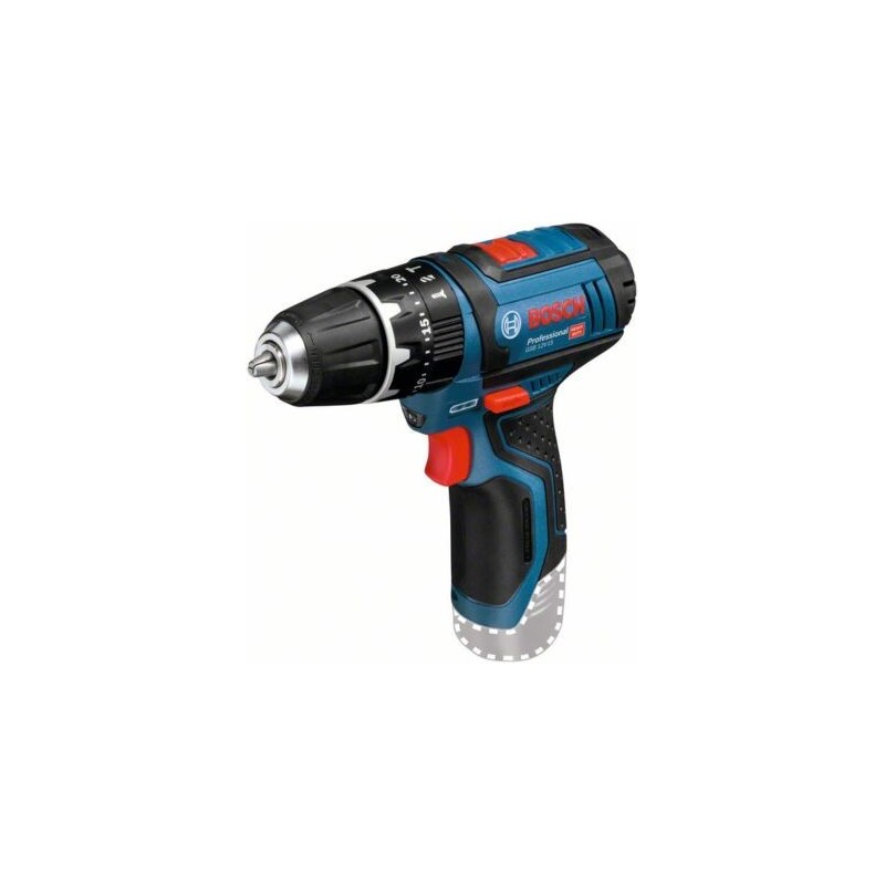 Caratteristiche tecniche: • Alimentazione 12 V Li‑Ion (batteria e caricabatterie non inclusi) • Coppia (soft/duro) 15/30 Nm • Velocità a vuoto (1ª/2ª) 0–380 / 0–1 300 rpm • Numero colpi max 19 500 colpi/min • Mandrino autoserrante 1 – 10 mm con Auto‑Lock • Posizioni di coppia 20+1 • Capacità foratura legno 19 mm • Capacità foratura acciaio 10 mm • Capacità foratura muratura 10 mm • Funzioni incluse: percussione, 2 velocità meccaniche, indicatore livello carica, Electronic Cell Protection, LED di lavoro • Compatibilità tutte batterie e caricabatterie Bosch Professional 12 V/10,8 V • Peso (con batteria) circa 1 kg