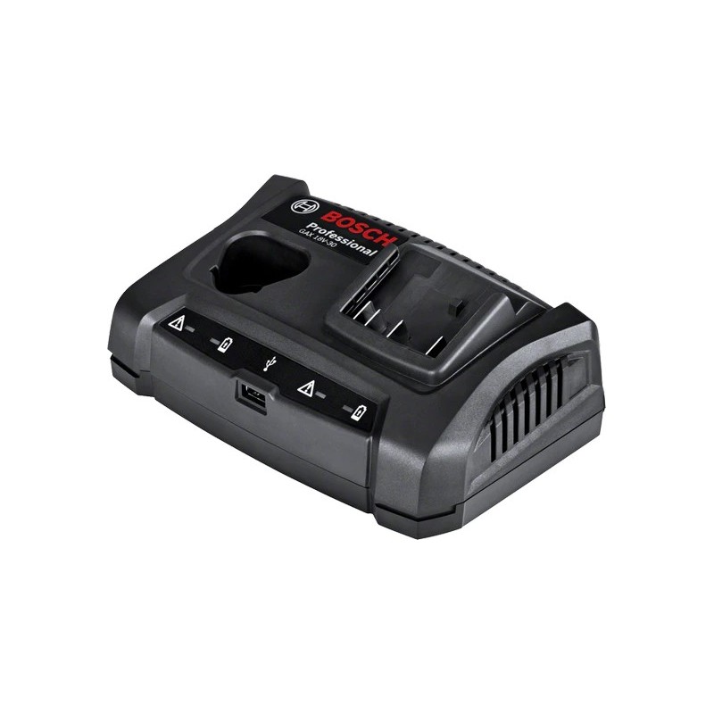 Questo caricabatterie Bosch GAX 18V‑30 Professional permette di caricare due batterie Bosch in contemporanea o in sequenza, offrendo funzionamento multivoltaggio (10,8 V – 18 V) e una porta USB integrata (5 V max 2,1 A) per ricaricare dispositivi come smartphone o tablet durante il lavoro. È concepito per professionisti che utilizzano batterie di differenti tensioni e desiderano un singolo caricabatterie che supporti sia batterie piccole sia quelle da 18 V, con tempi di carica rapidi e interfaccia intuitiva.