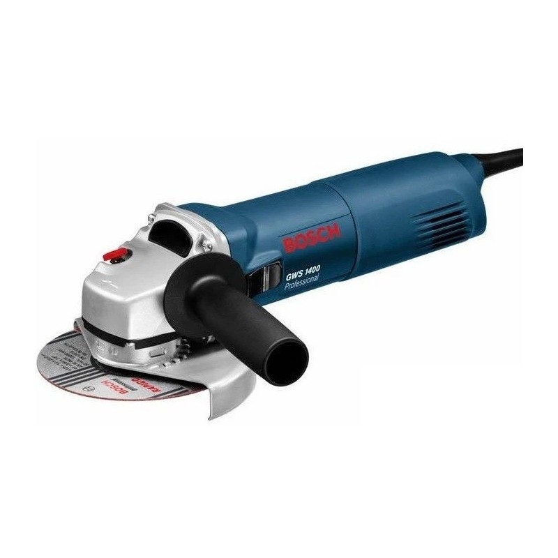 Smerigliatrice angolare Bosch GWS 1400 Professional con motore da 1400 W e disco da 125 mm, progettata per taglio, molatura e sbavatura su metallo, muratura, piastrelle e materiali da costruzione. Utensile potente e affidabile per uso regolare di fai‑da‑te avanzato o applicazioni professionali leggere e medie.