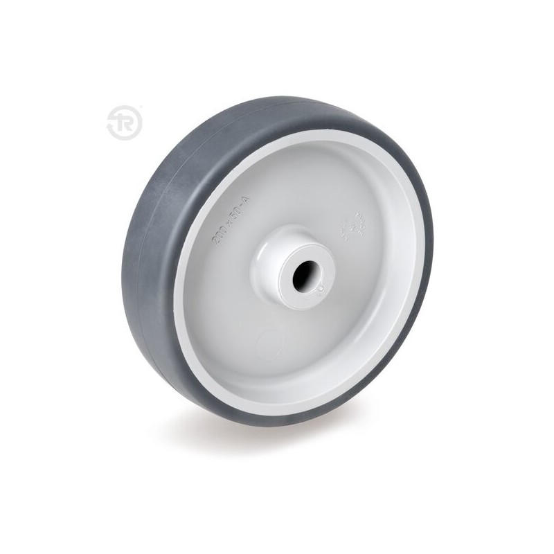 Ruota in gomma termoplastica (TPR) senza supporto marca Tellure Rota. Leggera, silenziosa, non lascia tracce. 5 misure.