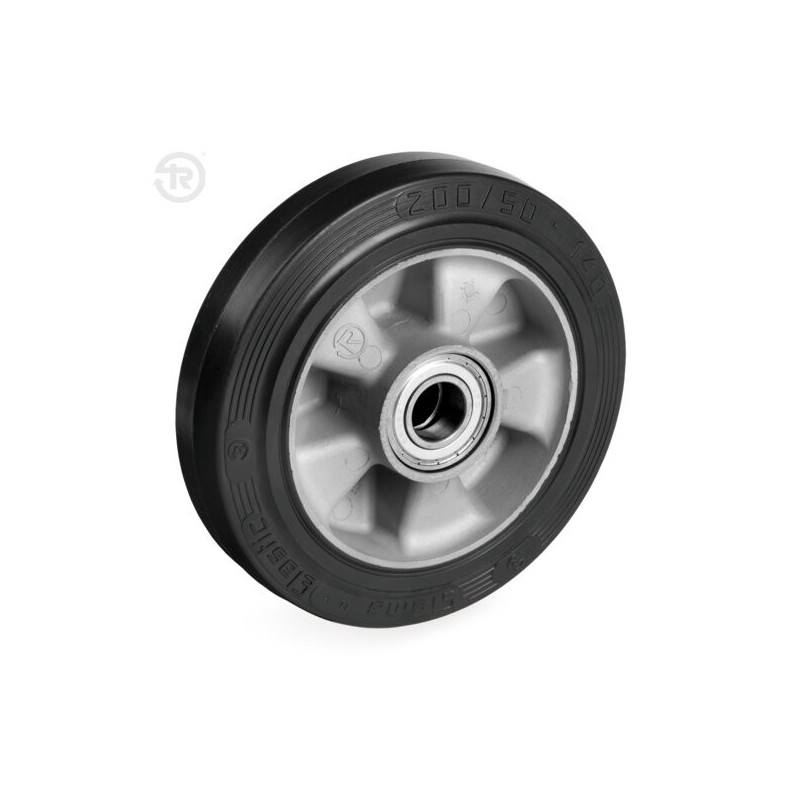 Ruota in gomma con nucleo alluminio marca Tellure Rota. 5 misure con foro 20 o 25mm.
