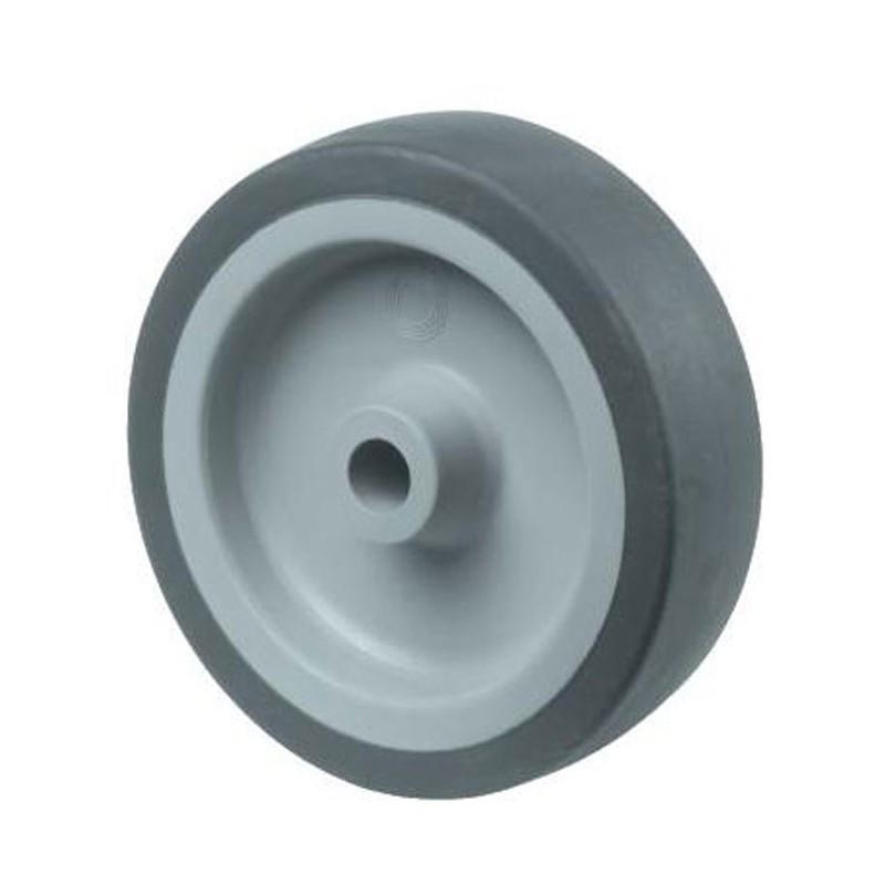 Ruota in plastica con fascia in gomma D.50mm senza supporto. Compatta per piccoli carrelli e mobili leggeri.