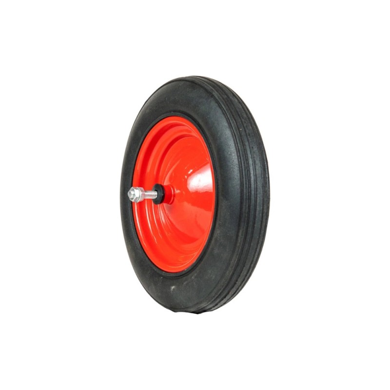 Ruota di ricambio per carriola. 3 versioni per carriole da 75 e 100 litri. Inclusa versione con nucleo in metallo e perno 130mm.