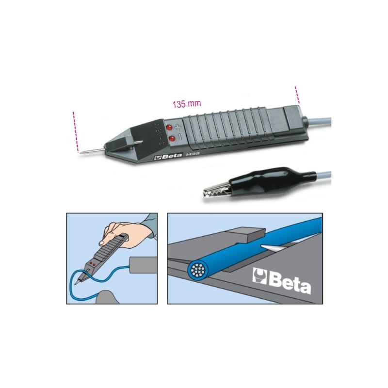 Tester/rilevatore professionale Beta art. 1498 per verifica presenza tensione e parametri elettrici. Indicazione chiara per sicurezza dell'operatore.