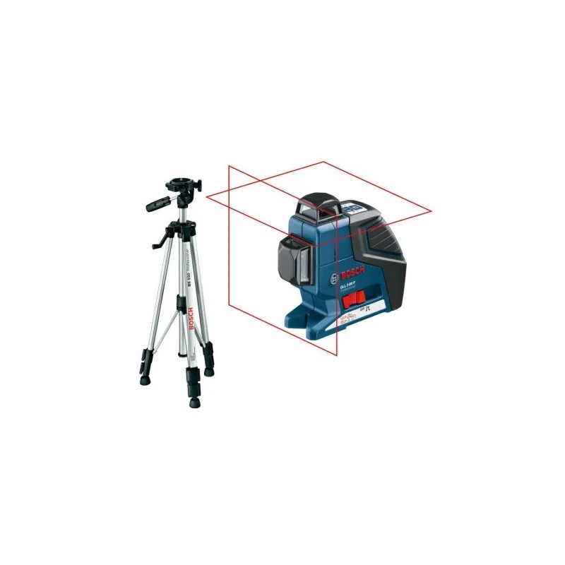 :Tracciatore Bosch GLL2‑80 P + BS150 è un livella laser a linee professionale con treppiede incluso progettato per tracciatura e allineamento di piani orizzontali e verticali in ambienti interni come cantieri, officine o durante installazioni tecniche. Il sistema proietta due linee laser a 360° per semplificare operazioni di livellamento su pareti, pavimenti o soffitti con precisione elevata e grande praticità d’uso.