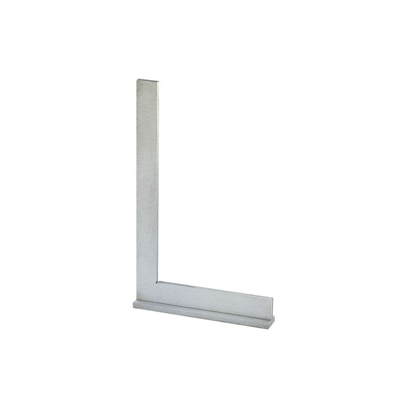 Squadra a 90° a cappello realizzata in acciaio temprato con profilo a “cappello” per garantire stabilità e resistenza alla torsione, dotata di misure 100 × 70 mm per tracciature e verifiche di angoli retti su pezzi metallici e componenti meccanici; la superficie è lucidata e marcata con incisioni leggibili, con bordo di appoggio rinforzato per uso continuo in officina meccanica e laboratori.