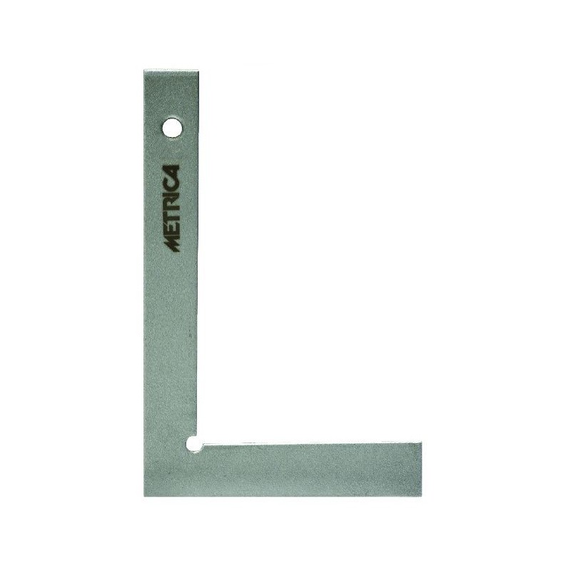 Squadra semplice in acciaio zincato con bordo di appoggio per garantire stabilità durante il tracciamento di angoli retti e linee guida su superfici metalliche, legno o altri materiali; la finitura zincata conferisce resistenza alla corrosione, mentre le dimensioni standard permettono utilizzo versatile in officina, cantieri e laboratori.