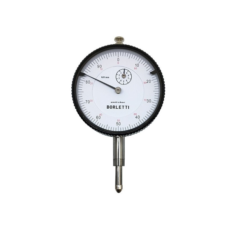 Comparatore centesimale analogico Borletti SC60ANT con quadrante Ø 60 mm, antiurto e campo di misura 0 ÷ 10 mm con risoluzione 0,01 mm per controlli dimensionali di precisione.
