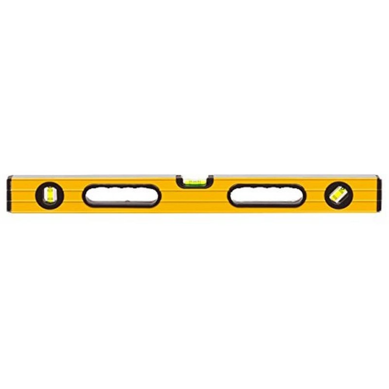 La livella LTF 12620 Gold 80 cm è uno strumento di misura manuale di precisione con profilo in alluminio estruso verniciato o anodizzato, equipaggiata con tre fiale di livello per verifiche di orizzontalità, verticalità e angolazioni intermedie; costruzione robusta adatta a uso professionale in edilizia, carpenteria, installazioni e tracciature tecniche, con superficie rettificata per letture affidabili e tappi terminali di protezione anticaduta.