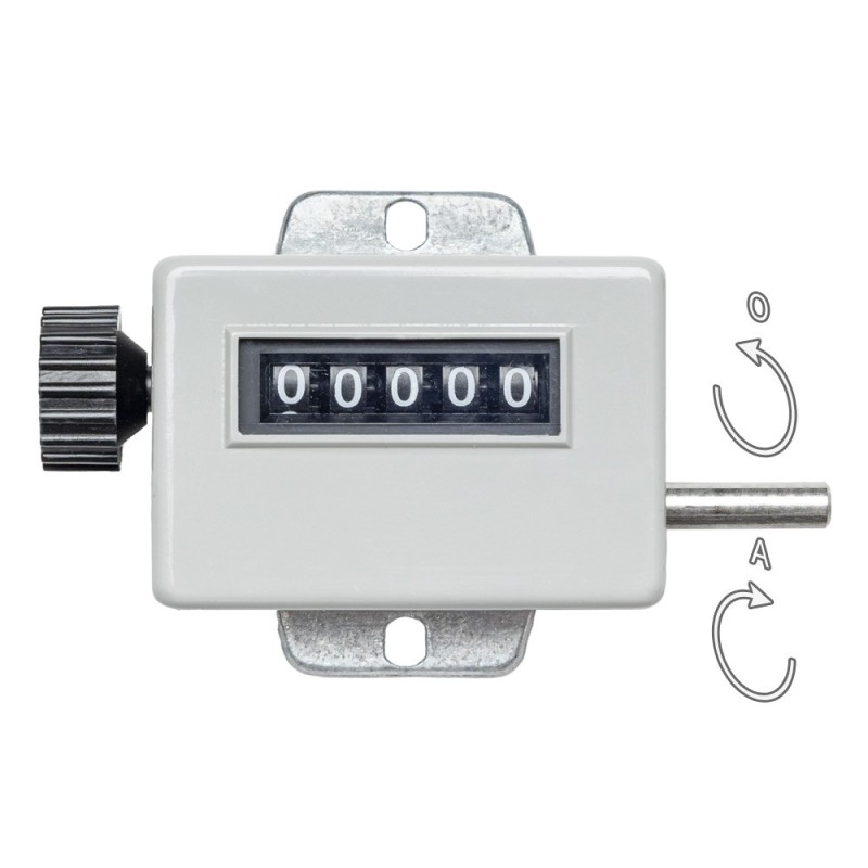 Contacolpi meccanico M63 a 5 cifre è un dispositivo di conteggio meccanico ad alta affidabilità con display a 5 cifre altezza 4,5 mm e azzeramento mediante pulsante dedicato, progettato per rilevare e registrare il numero di colpi o cicli generati da un albero rotante tramite asse di comando di ø 5 mm con montaggio unilaterale; il contatore supporta una velocità di conteggio fino a 1000 battute al minuto, consente la configurazione del senso di rotazione (orario o antiorario) e trova impiego in macchine utensili, presse, impianti meccanici e applicazioni industriali dove sia necessario un monitoraggio semplice ed efficace dei cicli operativi.