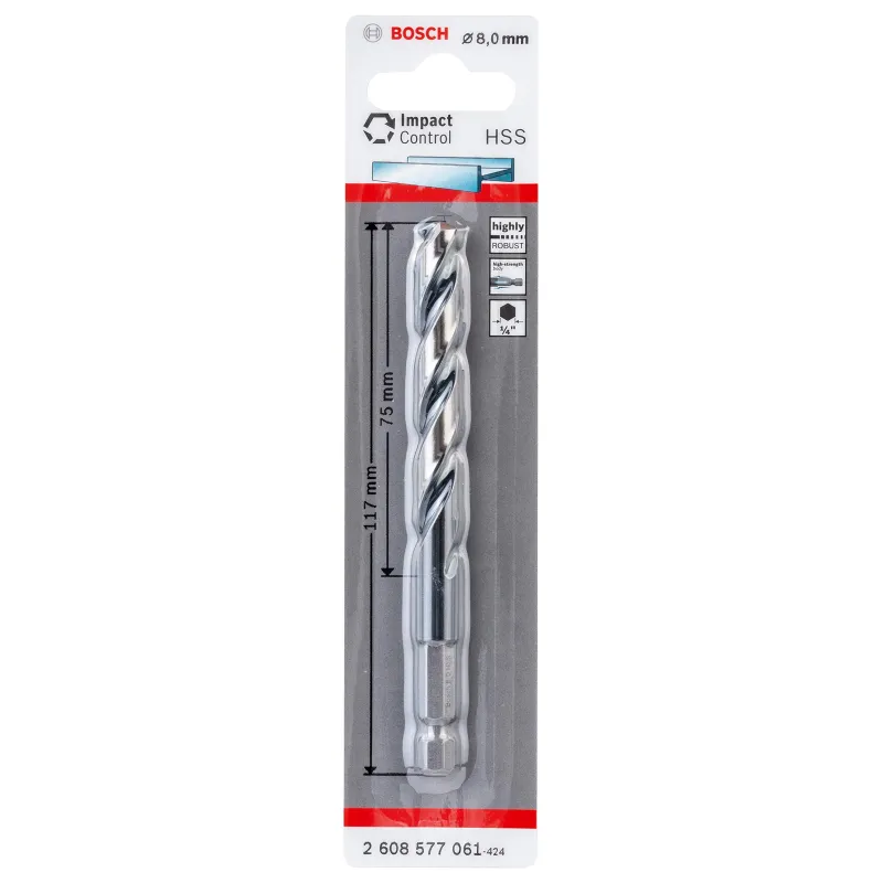 Punta per metallo con attacco esagonale 1/4" BOSCH per utilizzo diretto su avvitatori e trapani con portainserti. Pratica e veloce per forature rapide senza cambio mandrino. Bosch è un gruppo industriale tedesco fondato nel 1886, leader mondiale nella produzione di elettroutensili e accessori professionali. La divisione Power Tools offre punte, frese, corone e scalpelli di alta qualità per edilizia e lavorazione dei materiali.