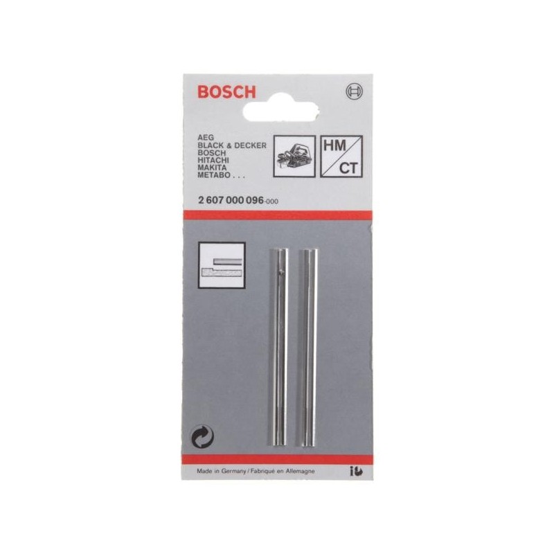 Lame Bosch in metallo duro (carburo) reversibili per pialletti elettrici, studiate per garantire risultati di piallatura puliti su legno e materiali legnosi.