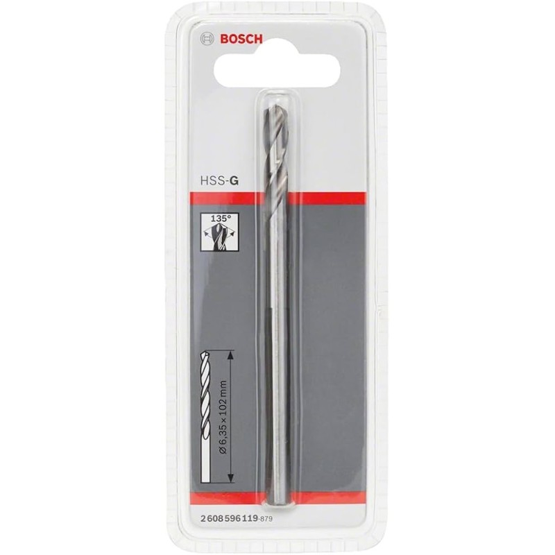 La punto di centraggio Bosch 2608596119 HSS‑G è realizzata in acciaio ad alta velocità (HSS‑G) con affilatura a croce e angolo di punta 135°, progettata per creare fori pilota accurati che guidano punte, seghe a tazza o punzoni filettati, migliorando precisione e stabilità di foratura su materiali compatti; con diametro 6,35 mm, lunghezza totale 102 mm e profondità di taglio utile circa 44 mm, è compatibile con adattatori con codolo esagonale da 11 mm per una vasta gamma di applicazioni su metallo, plastica, legno e cartongesso.