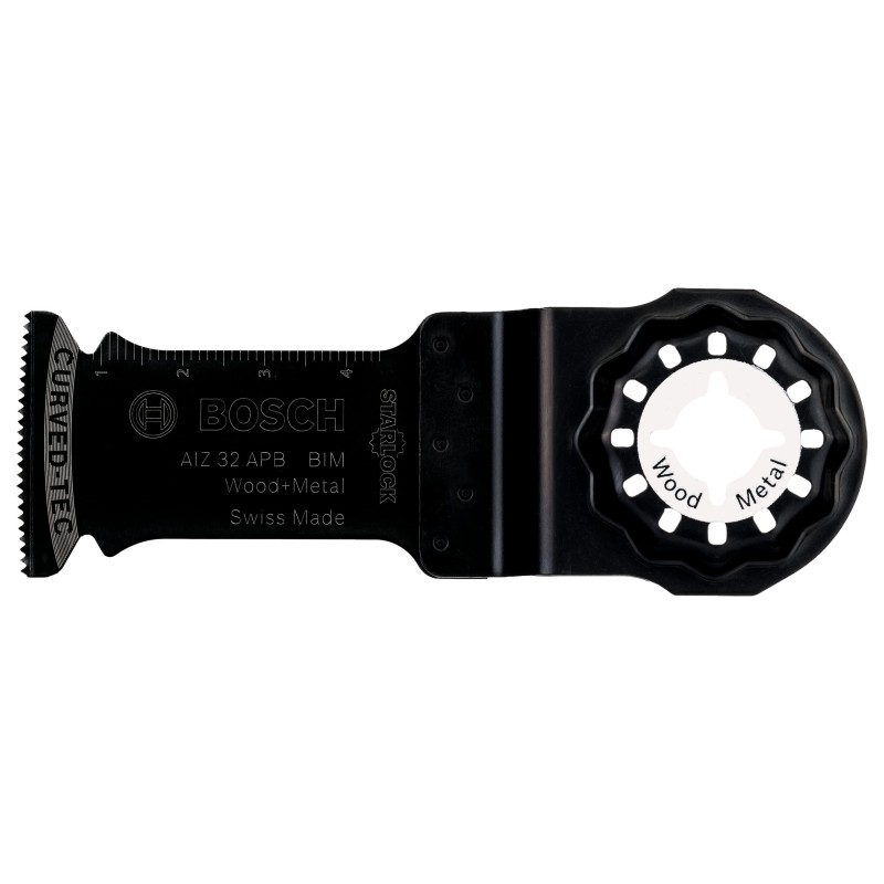 Lama multifunzione Bosch AIZ 32 APB 2608661644 realizzata in bimetallo (BIM) con denti in High Speed Steel (HSS) e corpo in High Carbon Steel (HCS), progettata per eseguire tagli di precisione con tecnologia Curved-Tec grazie al profilo di taglio arrotondato e permettere tagli dal pieno e a filo in legno, materiali plastici, metalli non ferrosi e piccoli profili metallici non temprati, con resistenza all’usura e al calore potenziata; il sistema di attacco Starlock Snap-In assicura un trasferimento di potenza ottimale e lo sgancio rapido della lama senza utensili.