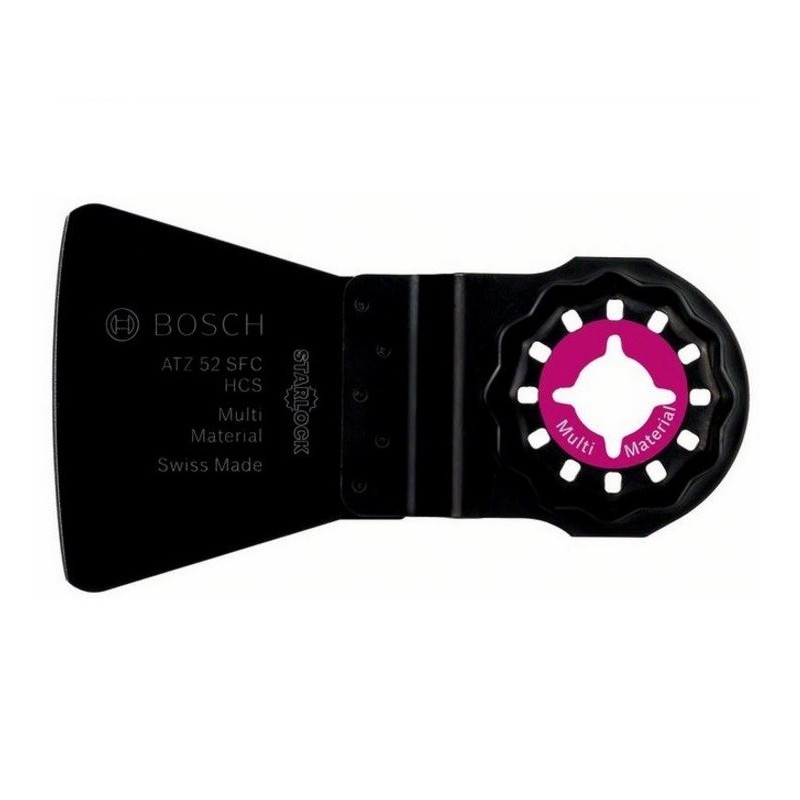 Lama Bosch 2608661647 ATZ 52 SFC è un accessorio originale Bosch Professional con corpo in acciaio ad alto tenore di carbonio (HCS) dotato di elasticità e flessibilità, ideale per raschiare residui morbidi come adesivi per moquette, vernice, giunti in silicone e materiali gommosi senza danneggiare la superficie sottostante. Il profilo affilato consente di lavorare agevolmente su superfici piane o in spazi ristretti. Il sistema di montaggio Starlock Snap‑In permette un cambio rapido dell’accessorio in circa 3 secondi senza attrezzi aggiuntivi e garantisce un ottimale trasferimento di potenza tra utensile e lama. Compatibile con utensili multifunzione dotati di Starlock, Starlock Plus e Starlock Max.