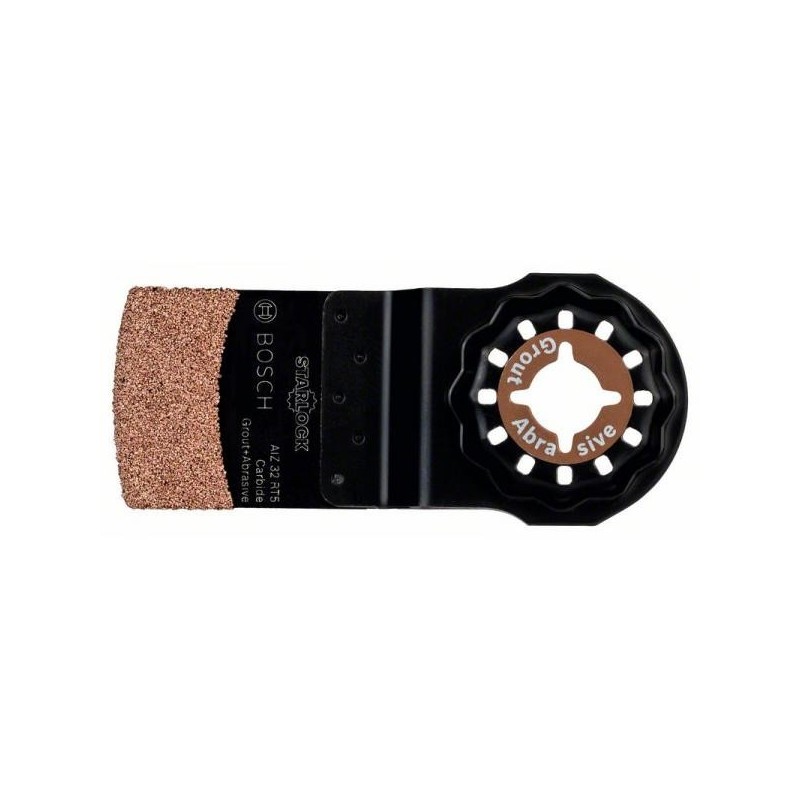 Lama Bosch 2608661868 Starlock AIZ 32 RT5 Carbide‑RIFF, lama di sega a immersione in carburo da 32 mm per utensili multifunzione oscillanti con attacco Starlock/Snap‑In, progettata per tagli a immersione e raschiatura in materiali abrasivi e difficili come fibra di vetro, pannelli fibra‑cemento e malta.