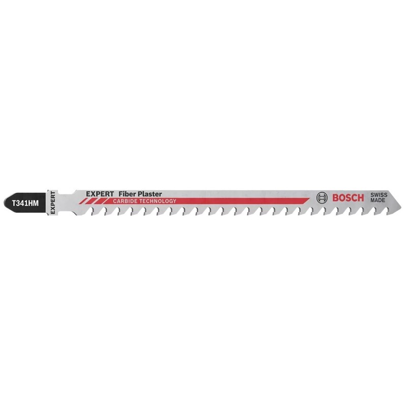 Lame BOSCH ottimizzate per pannelli gesso rivestiti (cartongesso) e fibrogesso. Dentatura grossolana 6 TPI (passo ~4mm) taglia rapidamente materiale morbido senza intasamento polvere gesso nelle scanalature. Geometria denti studiata riduce sbriciolamento bordi taglio mantenendoli integri. Acciaio HCS. Lunghezza standard 100-130mm. Disponibili varie configurazioni.
