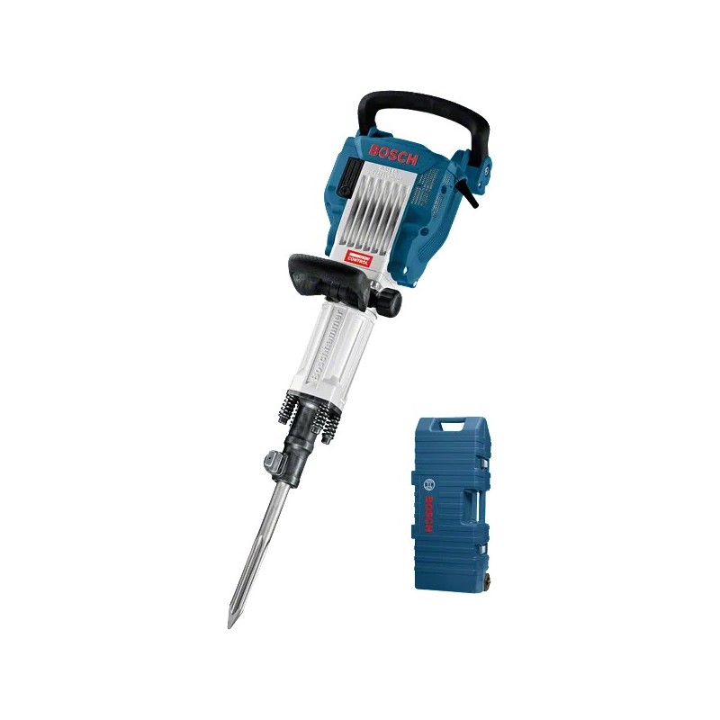 Bosch GSH 16‑30 Professional è un martello demolitore cablato con potenza assorbita di circa 1 750 W e energia di impatto di circa 41 J, che garantisce un’elevata capacità di asportazione del materiale con ogni colpo. Il sistema Vibration Control riduce le vibrazioni percepite dall’operatore, migliorando comfort e controllo anche durante impieghi prolungati. La macchina è costruita con componenti metallici estremamente robusti per resistere alle condizioni di lavoro più gravose e include accessori come trolley per trasporto, impugnatura supplementare e scalpello a punta con attacco esagonale per affrontare rapidamente demolizioni su superfici orizzontali e verticali.