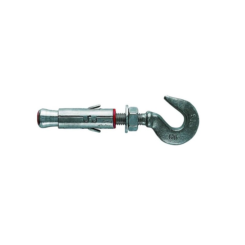 Tassello ad espansione con gancio (tipo Piovra SLM) in acciaio zincato per ancoraggio con elemento di sospensione su calcestruzzo e muratura. Il gancio integrato consente la sospensione diretta di oggetti, lampade e tubazioni. Ideale per installazioni a soffitto e a parete.
