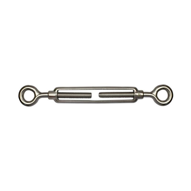 Tenditori (tensori) con due occhi in acciaio inox AISI 316 marino. Regolazione tensione funi mediante rotazione corpo filettato. Disponibili in varie misure.
