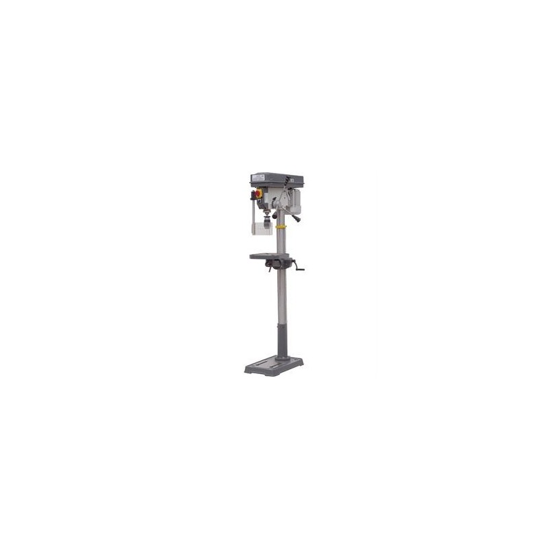 Trapano a colonna. Precisione di rotazione concentrica < 0,03 mm nel cannotto del mandrino di foratura. Albero mandrino portapunta montato su cuscinetti a sfera di precisione. Mandrino autoserrante di serie. Alta silenziosità di funzionamento grazie alla pulegge in alluminio e al trascinatore a più denti rettificato. Aumento della forza di trasmissione e diminuzione della perdita di rendimento grazie alle cinghie di alta qualità. Leve di forma ergonomica, con impugnatura antiscivolo Softgrip. Fermo regolabile della profondità di foratura. Basamento massiccio, di ampie dimensioni, con scanalature a T, fortemente rinforzato da nervature nalla parte posteriore. Motori elettrici in alluminio potenti e silenziosi. Interruttore di sicurezza facilmente azionabile, conforme a IP 54, con relè di tensione minima, interruttore di emergenza. Accessori in dotazione: mandrino autoserrante 0-16 mm B16, attacco mandrino CM3-B16, protezione mandrino