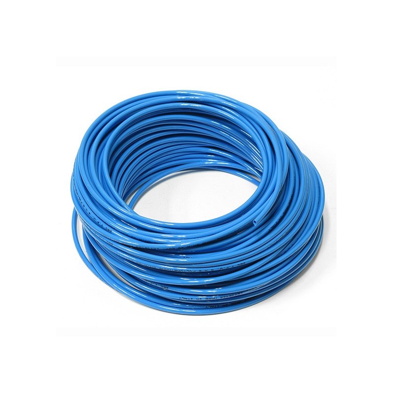 Tubo in poliuretano trecciato per aria compressa, colore azzurro, resistente a pressioni fino a 20 bar.